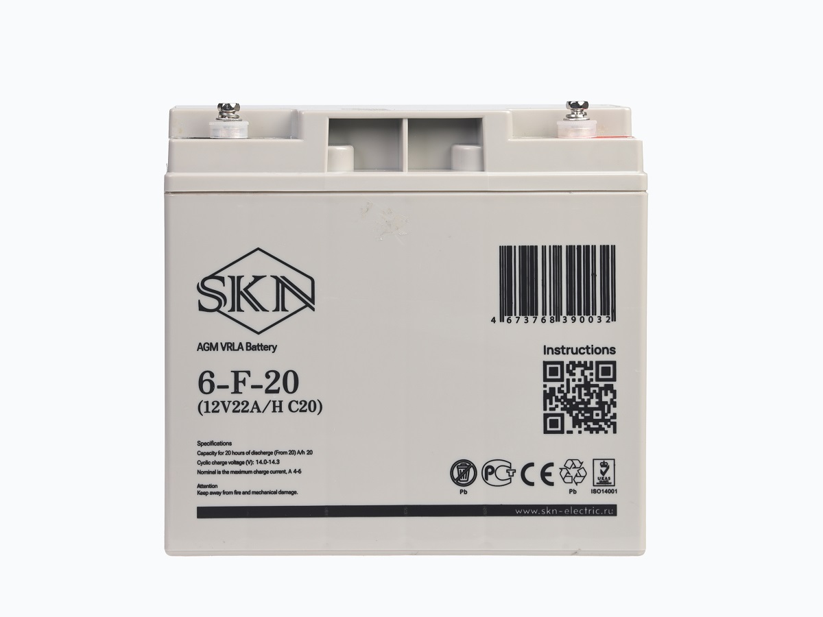 Аккумуляторная батарея SKN 6-F-20 изготовлена по технологии AGM и включает в себя утолщённые свинцовые пластины с плотным слоем сепаратора между ними. Батарея не требует обслуживания в течение всего срока эксплуатации. Она идеально подходит для использования в системах безопасности и сигнализации, источниках бесперебойного питания, аварийного освещения, а также в лёгком и детском электротранспорте и других аналогичных областях.