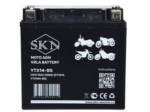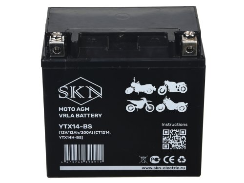 Аккумулятор стартерный для мототехники SKN YTX14-BS (12V/12Ah/200A ) [CT 1214,YTX14H-BS]