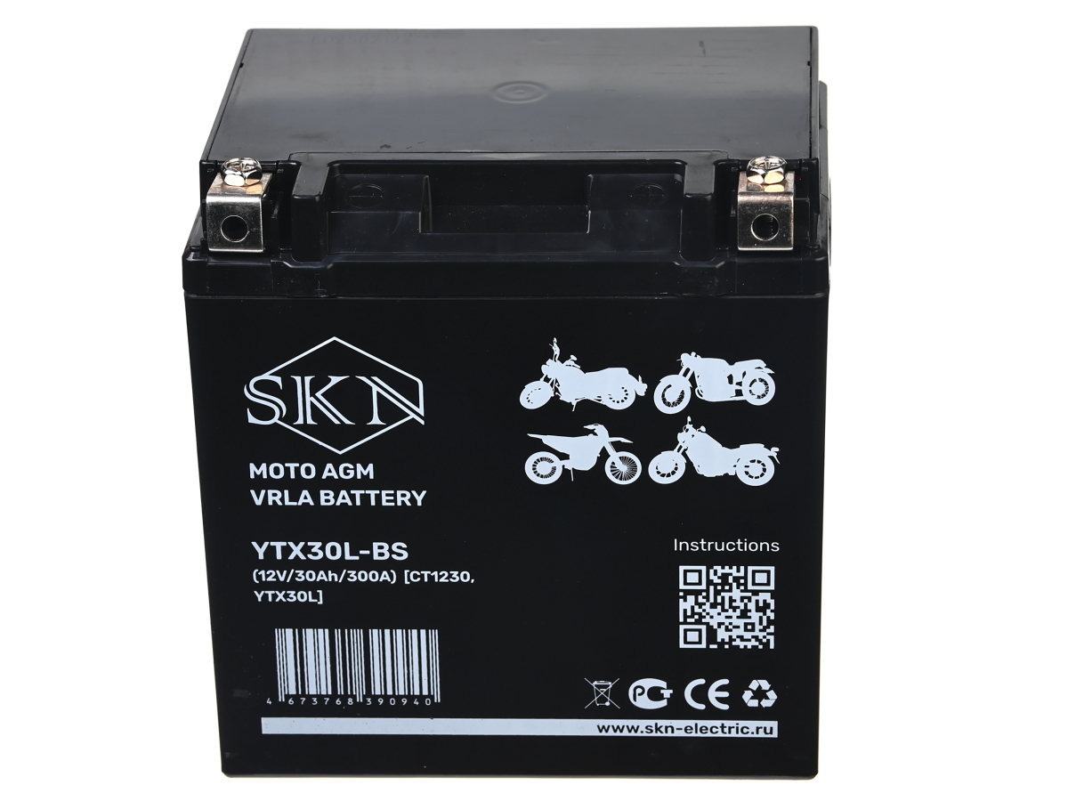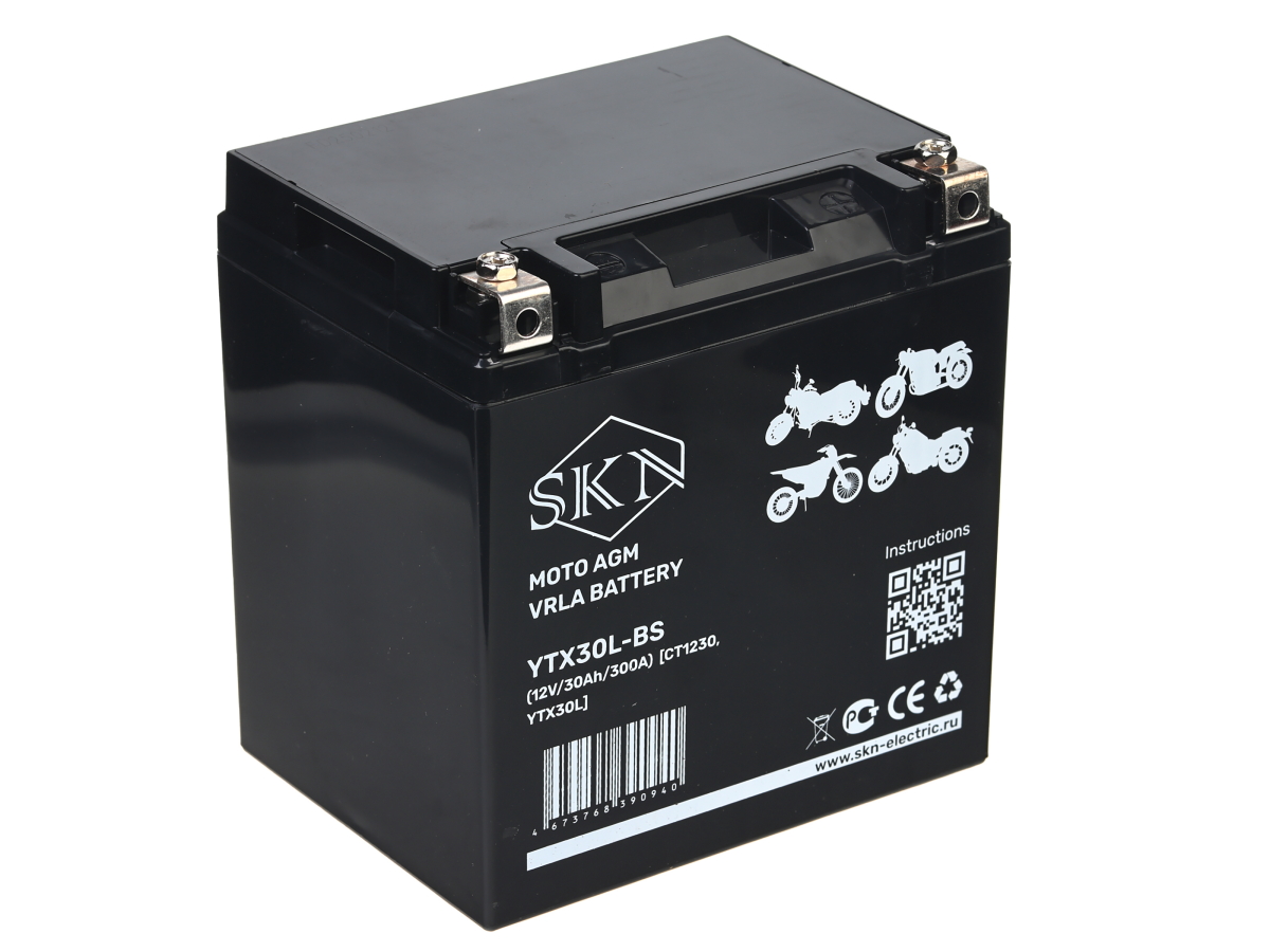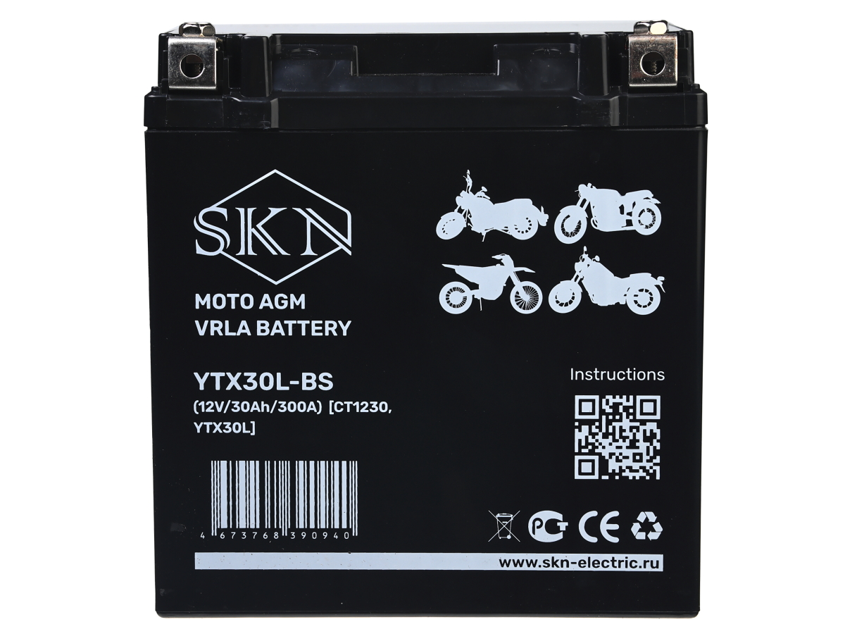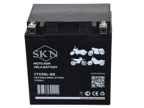 Аккумулятор стартерный для мототехники SKN YTX30L-BS (12V/30Ah/300A) [CT 1230, YTX30L]