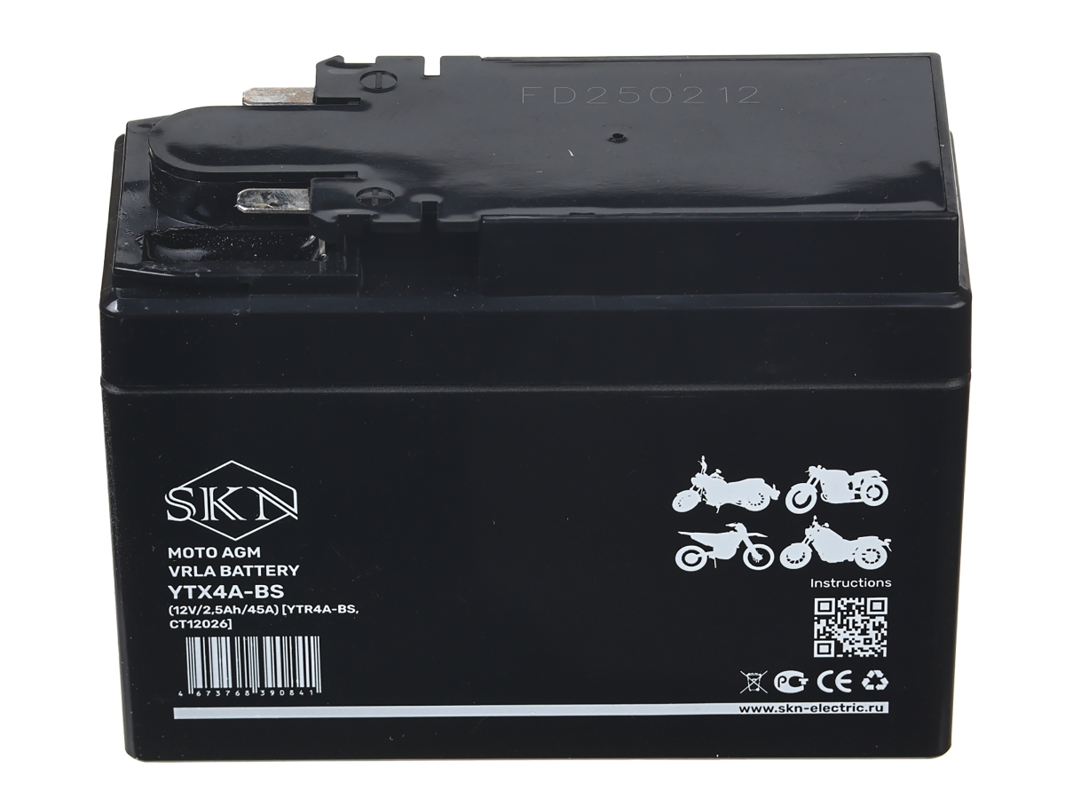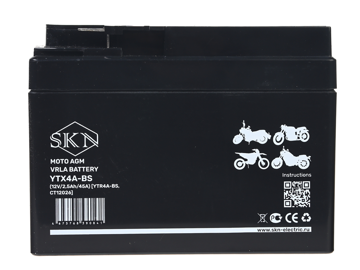 Аккумулятор стартерный для мототехники SKN YTX4A-BS (12V/2,5Ah/45A) [YTR4A-BS, CT 12026]