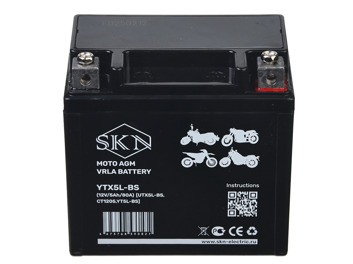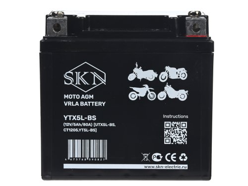 Аккумулятор стартерный для мототехники SKN YTX5L-BS (12V/5Ah/80A) [UTX5L-BS, CT1205, YT5L-BS]