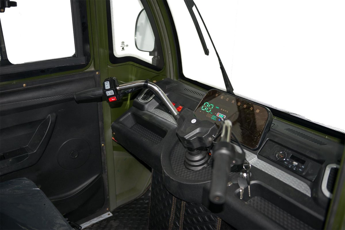 Трицикл оборудован закрытой кабиной с четырьмя дверьми и двумя рядами сидений — переднее для водителя, второй ряд для двух пассажиров. Сзади расположен грузовой отсек с откидными бортами для перевозки грузов общим весом до 700 кг.