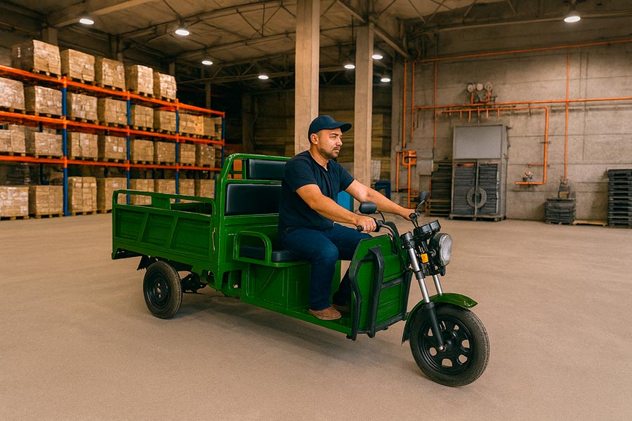 Хотите увидеть, как трицикл справляется с серьёзными нагрузками? Приезжайте на наш склад! В рабочей обстановке вы можете: